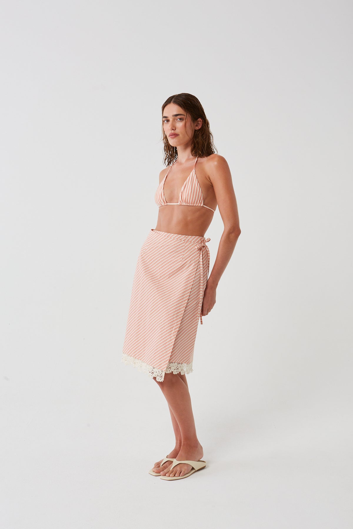 Cotton Stripe Wrap Skirt