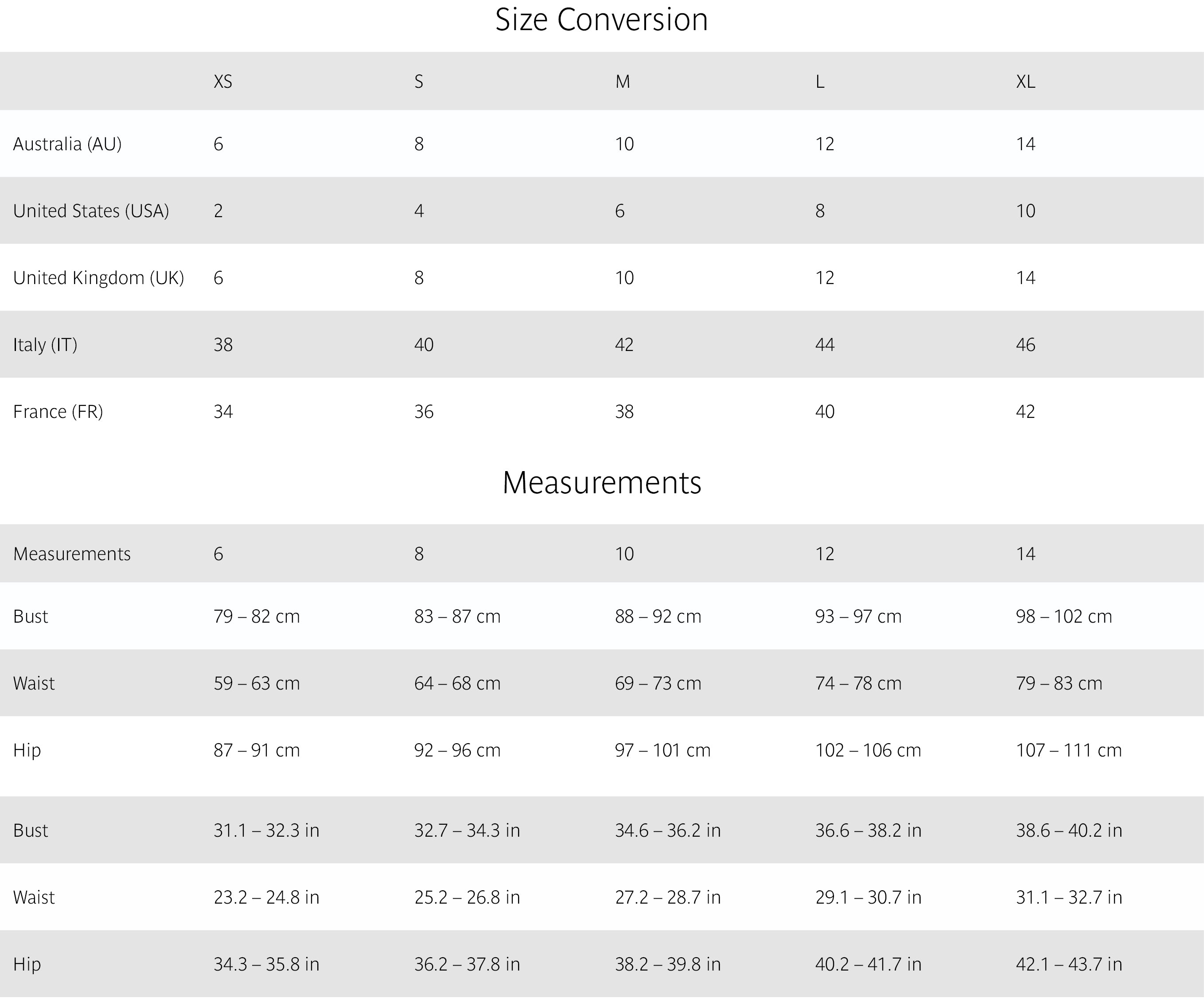 If you’re ever unsure which size to select, our team is always here to help. You’ll also find detailed, style-specific fit notes within the size guide selector on each product page, offering guidance for every piece.