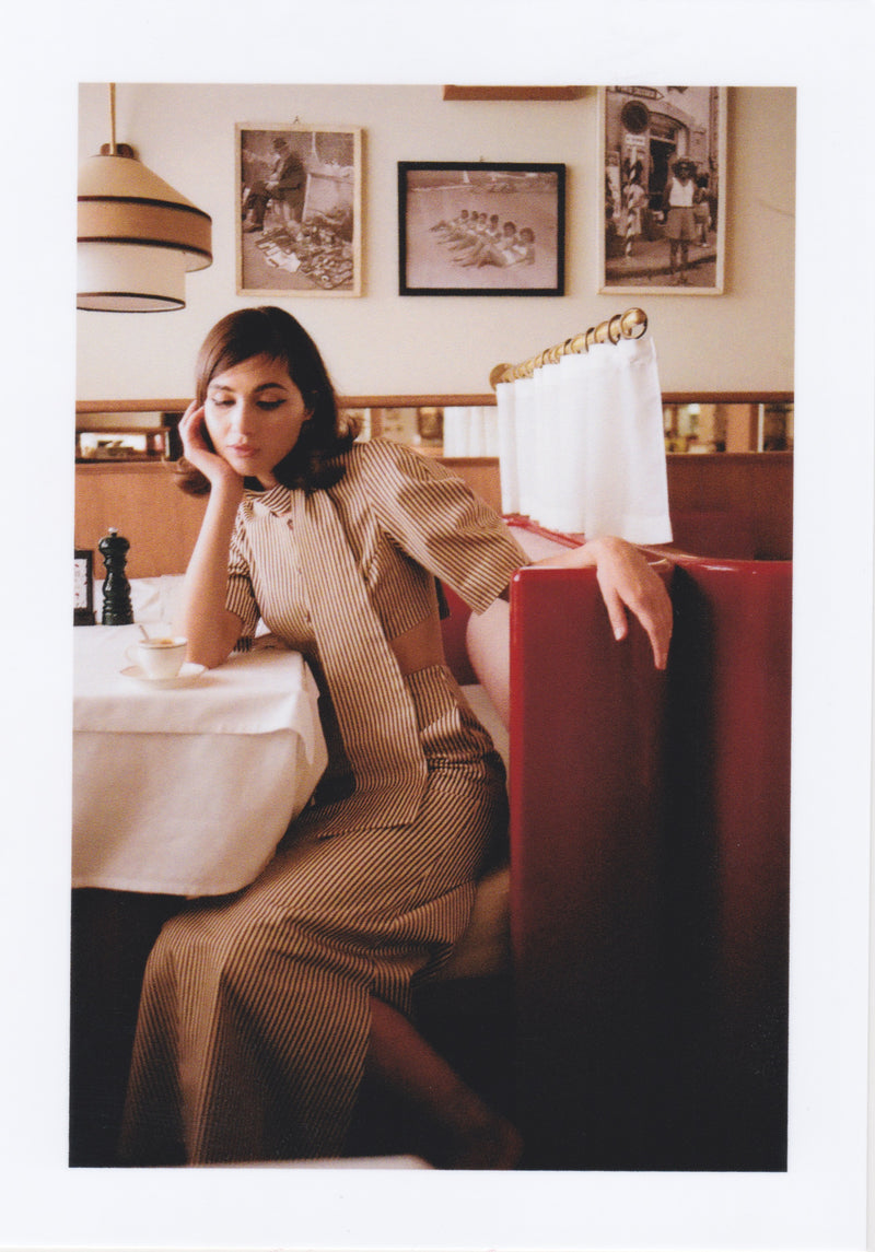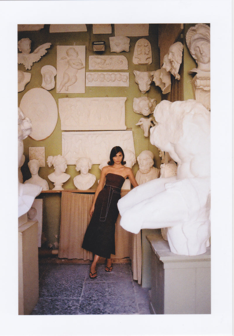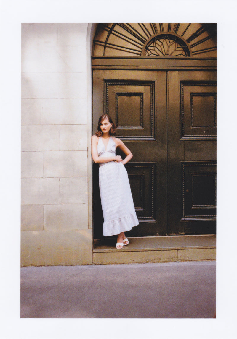 Within Tela a Righe, we play with form and rhythm: deep hems, delicate ruffles, and wide fluted edges, designed to move with you, catch the light, and live in motion.